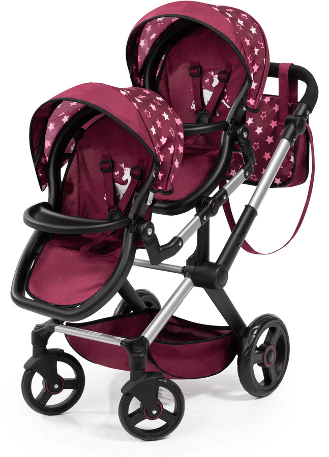 Bayer Twin Xeo Dukkeklapvogn – 3+år – Mørkerød med Enhjørning