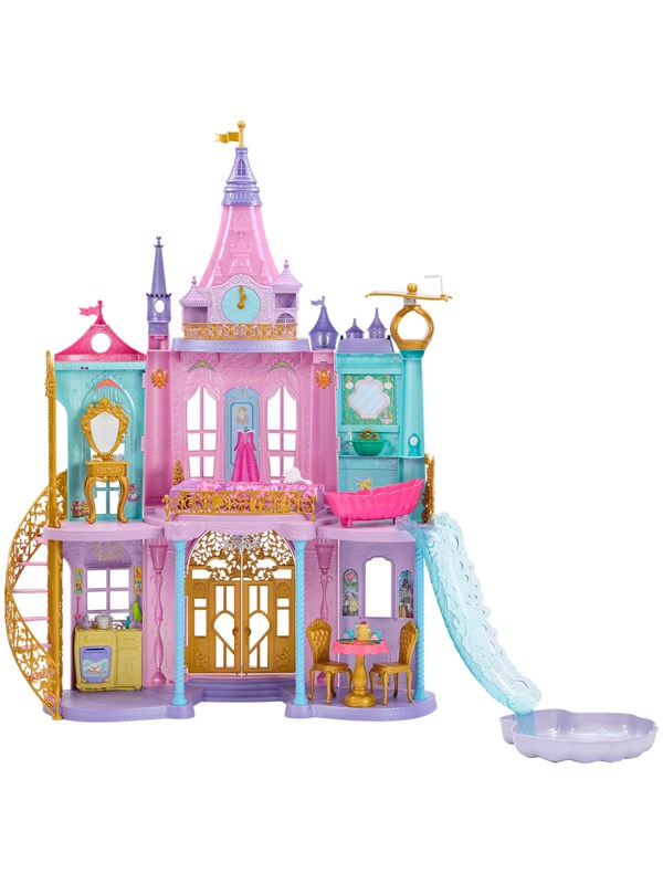 Det fantastiske eventyrslot er det ultimative Disney Princess-dukkehus. Dukkehuset er 120 cm højt, giver mulighed for leg hele vejen rundt, har magiske lys og lyde og 10 legeområder, der hver er inspireret af en Disney Princess-figur. Børn vil elske de 3 etager med leg, rutsjebanen og poolen og de over 25 møbler og tilbehørsdele. Det er det perfekte hjem til børns Disney Princess-dukker og deres eventyr. Farver og mønstre kan variere.
