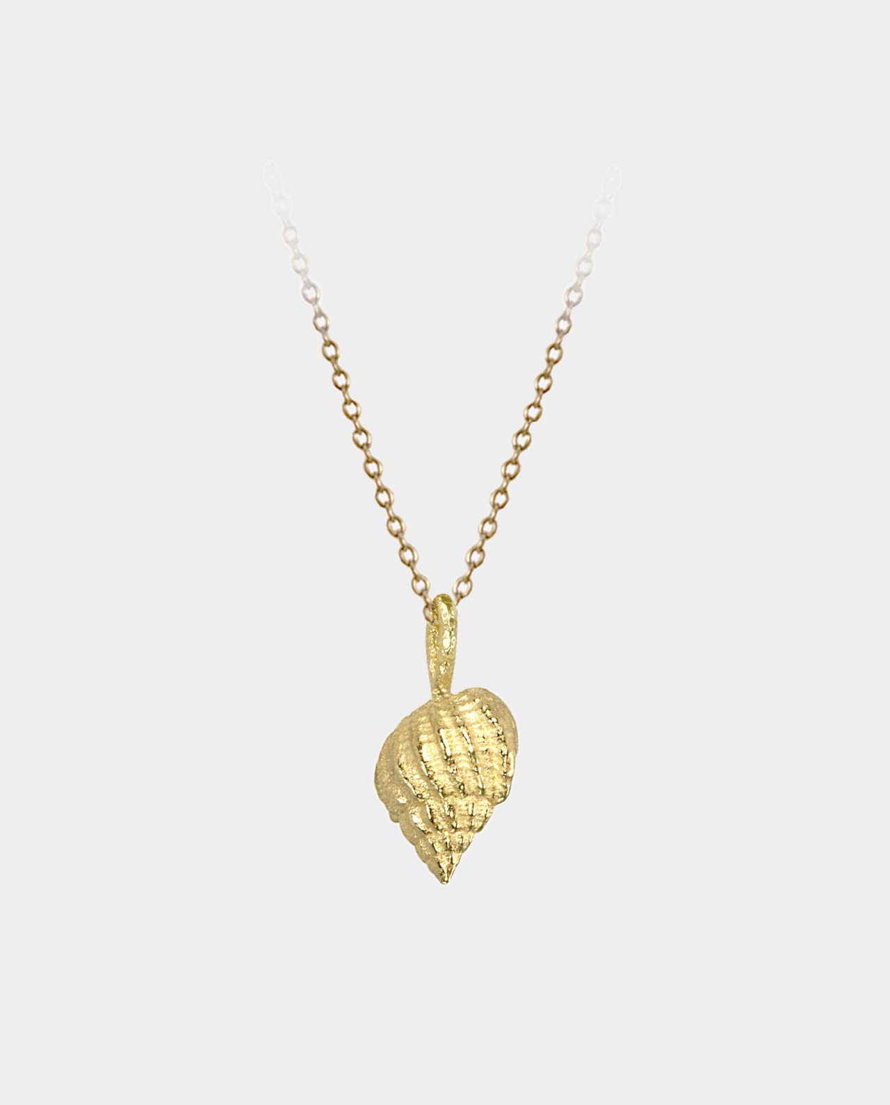 Halskædens vedhæng er en én-til-én-afstøbning at et lille smukt strandsneglehus, som jeg har fundet i strandkanten 100 meter fra mit sommerhus. Når det er lavvande dukker de op i sandet, og det er et godt tegn. De er nemlig garant for en god vandkvalitet