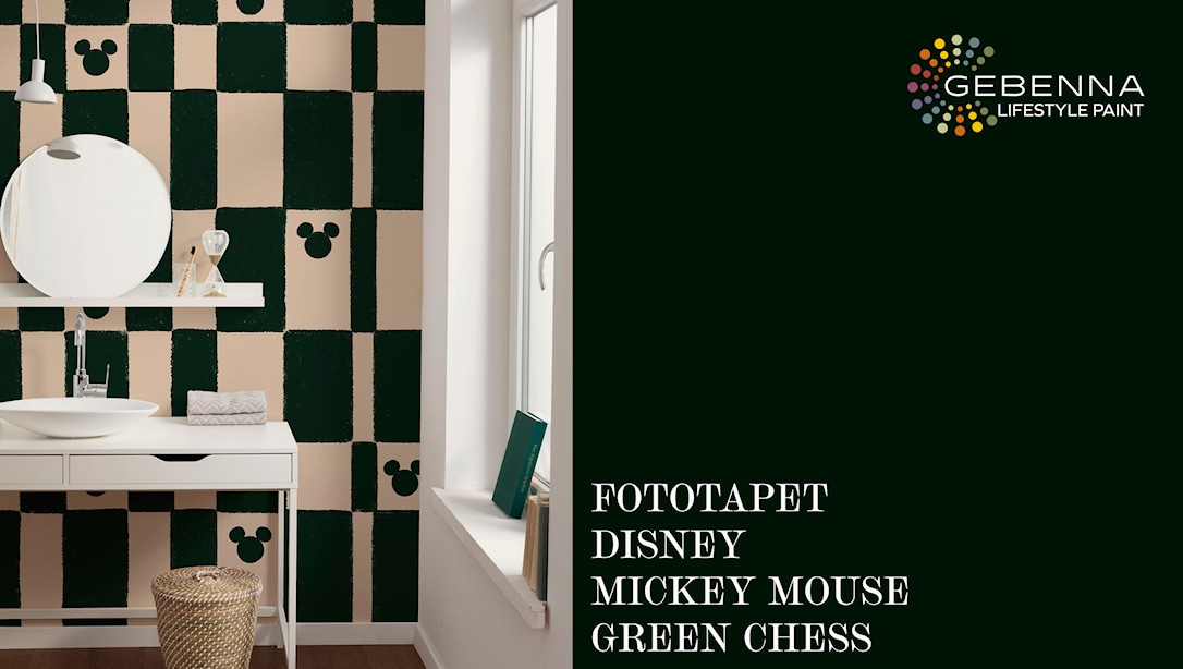 Det geometriske mønster i dette fototapet kombinerer rene linjer med legende detaljer: små Mickey Mouse-silhuetter dukker op igen og igen på